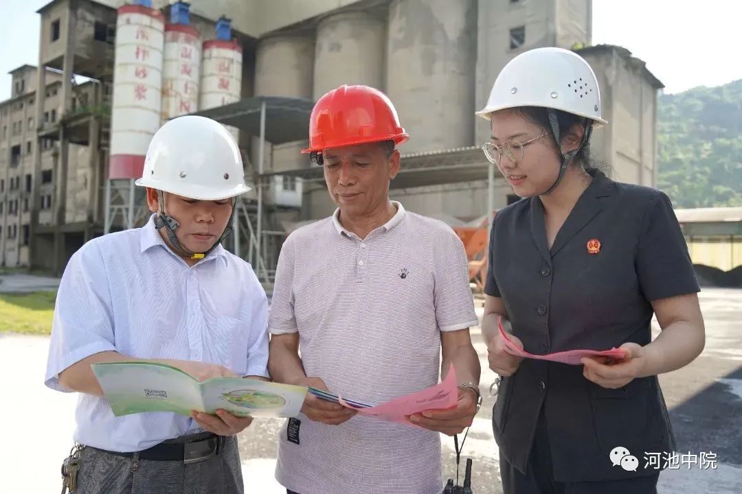 6月1日,罗城法院民事审判庭法官们深入广西罗城菱环水泥有限公司,开展“6 · 5”环境日普法宣传活动。