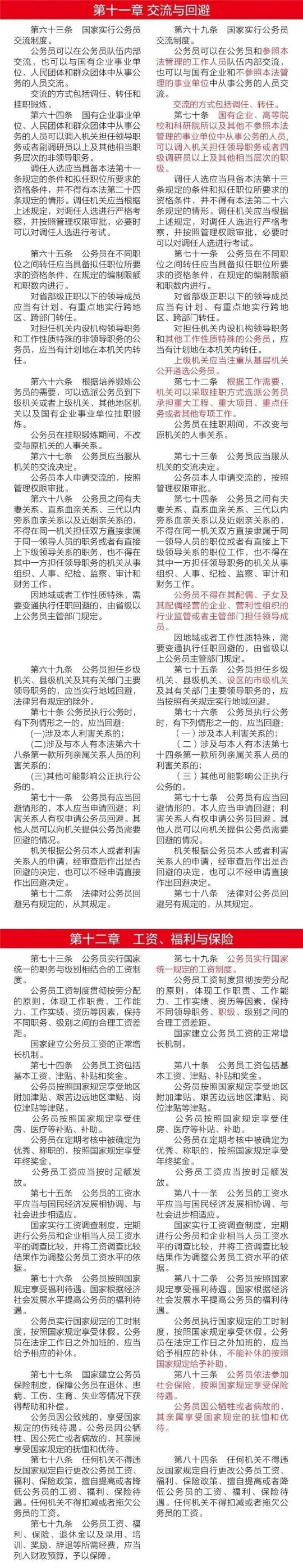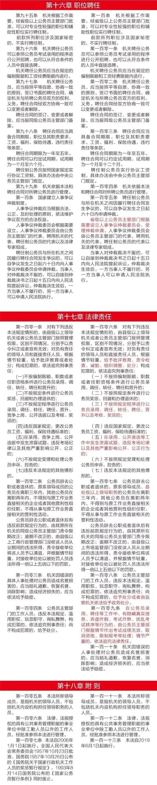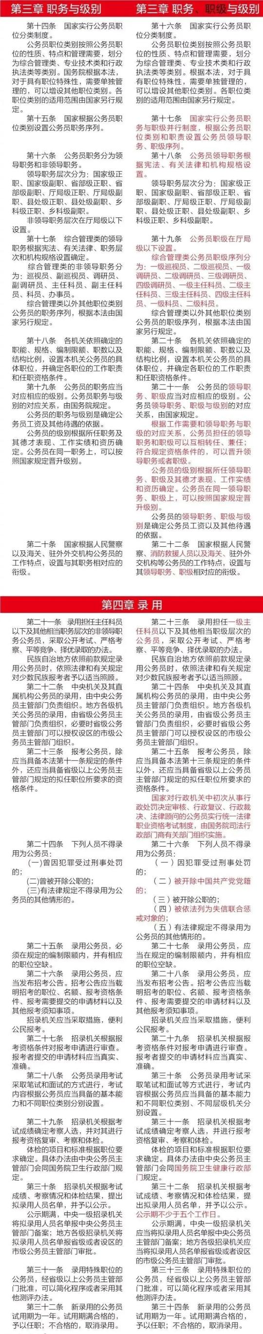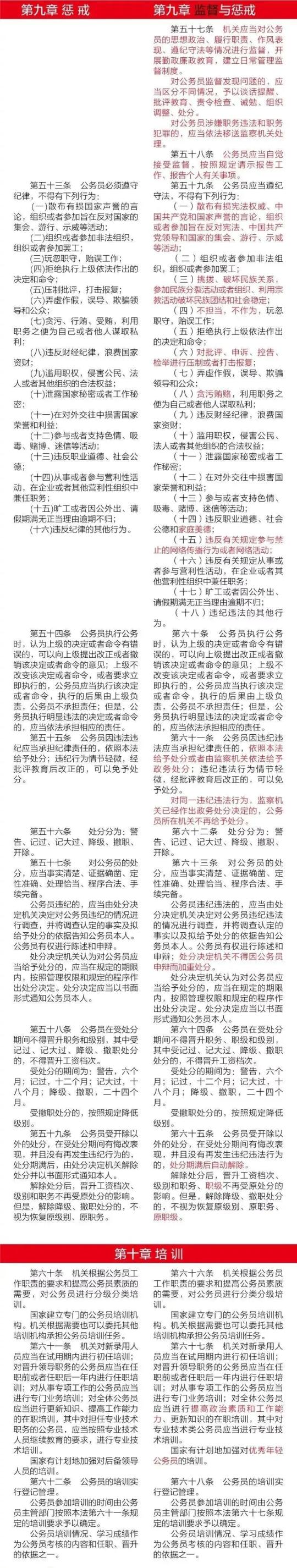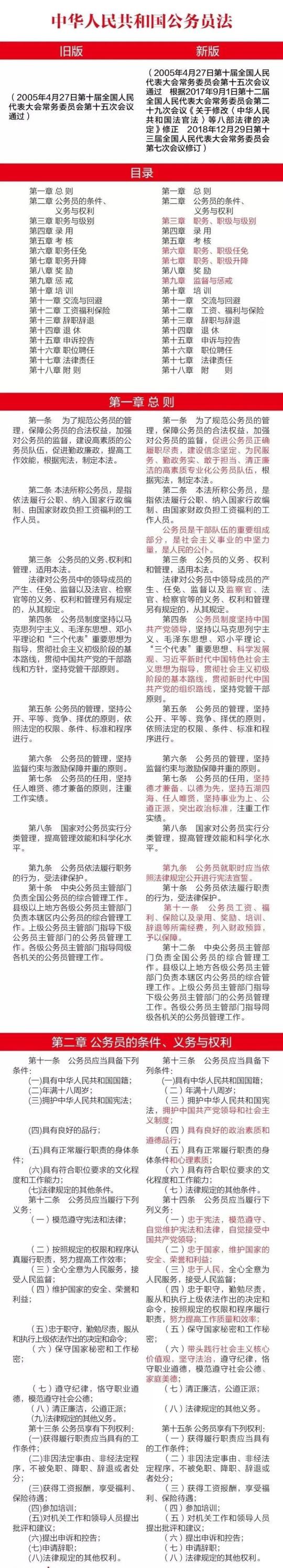 2018年12月29日,新修订的《公务员法》通过审议,国家主席习近平签署主席令予以公布。新修订的公务员法由原来的18章107条调整为18章113条,增加6条,实质性修改49条,个别文字修改16条,条文顺序调整2条。