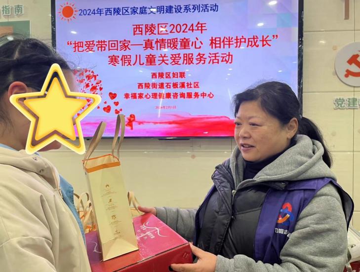 2024 年寒假期间, 西陵区各级妇联汇聚各方力量做好“把爱带回家——真情暖童心 相伴护成长”寒假儿童关爱服务工作, 让孩子们度过一个安全健康、温暖祥和的快乐假期, 以实际行动做好儿童成长引路人、儿童权益守护人、儿童未来筑梦人。