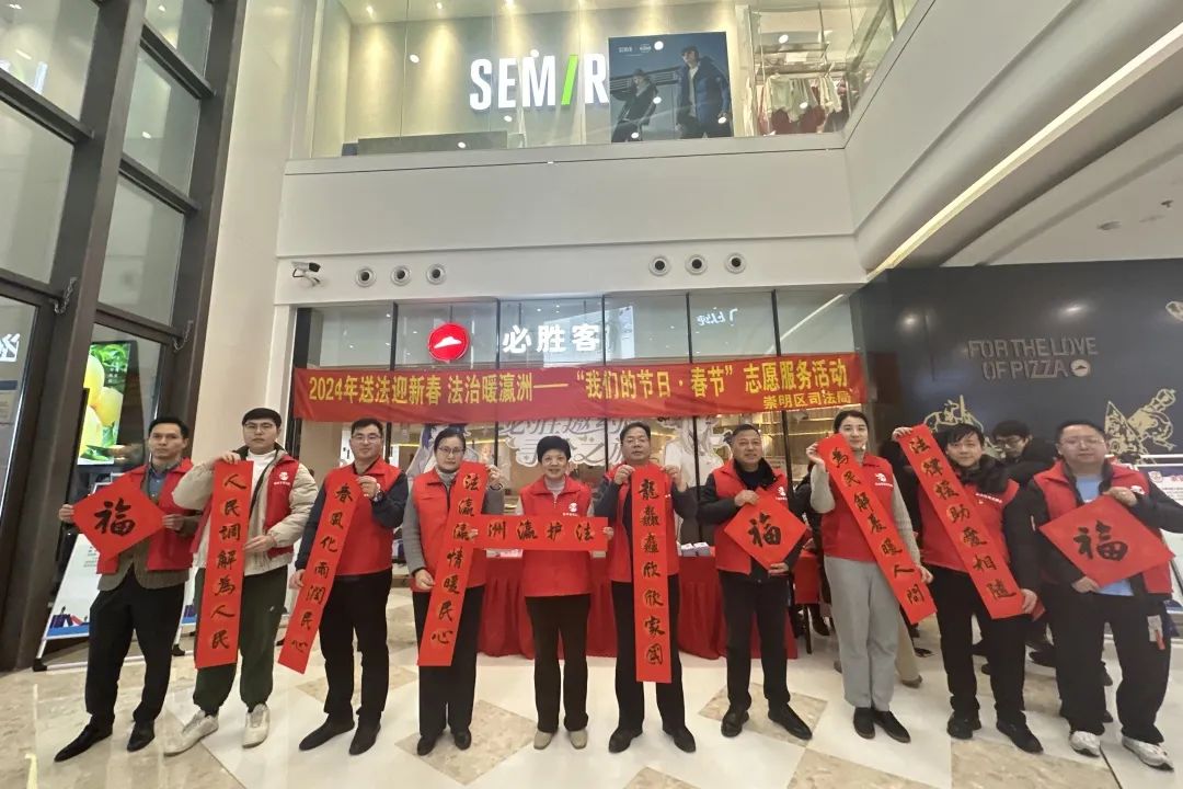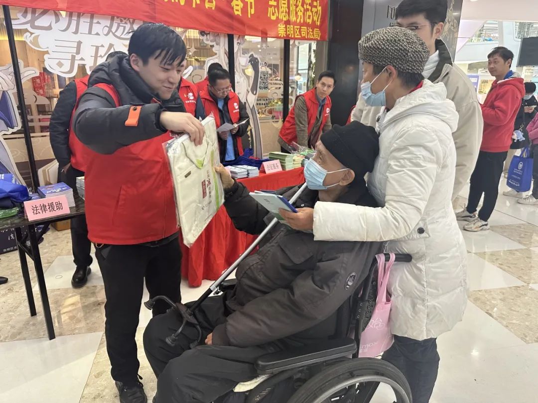 新春将至,为营造欢乐、祥和的节日氛围,切实提高群众的法治观念和法律意识,1月30日上午,崇明区司法局在崇明万达广场开展2024年送法迎新春 法治暖瀛洲——“我们的节日·春节”志愿服务活动,为群众送上有温度、有分量的“法治年货”,增添浓厚的“法治年味”。