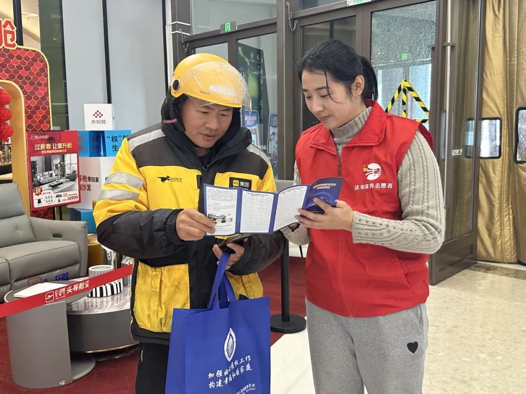 活动现场,普法志愿者围绕新就业形态劳动者和老年人关心关注的法律问题,详细讲解了宪法、民法典、劳动法等法律法规知识,针对提出的有关劳动合同签订、职工维权、法律援助、子女赡养、遗产分割等问题进行解答,为构建良好和谐的社会关系贡献法治力量。