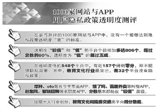千家网络平台测评用户隐私政策透明度 157家得零分