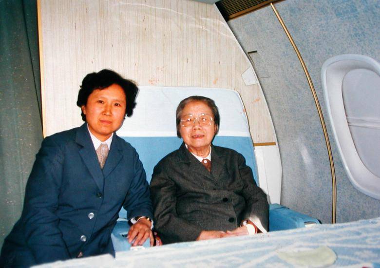 1985年11月20日,本文作者张心莉与邓颖超在飞机上。