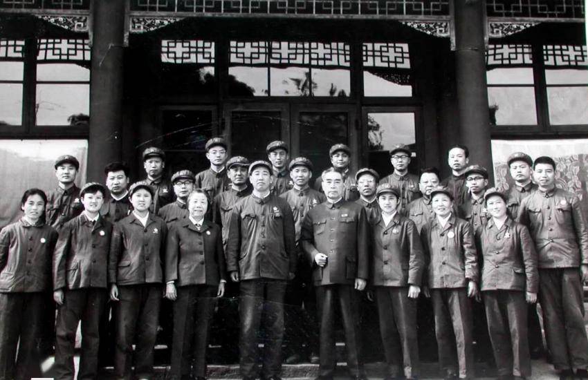 1970年5月20日,周恩来邓颖超与工作人员西花厅合影。