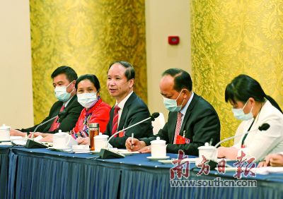 24日,广东代表团在驻地举行会议,分组审议民法典草案。