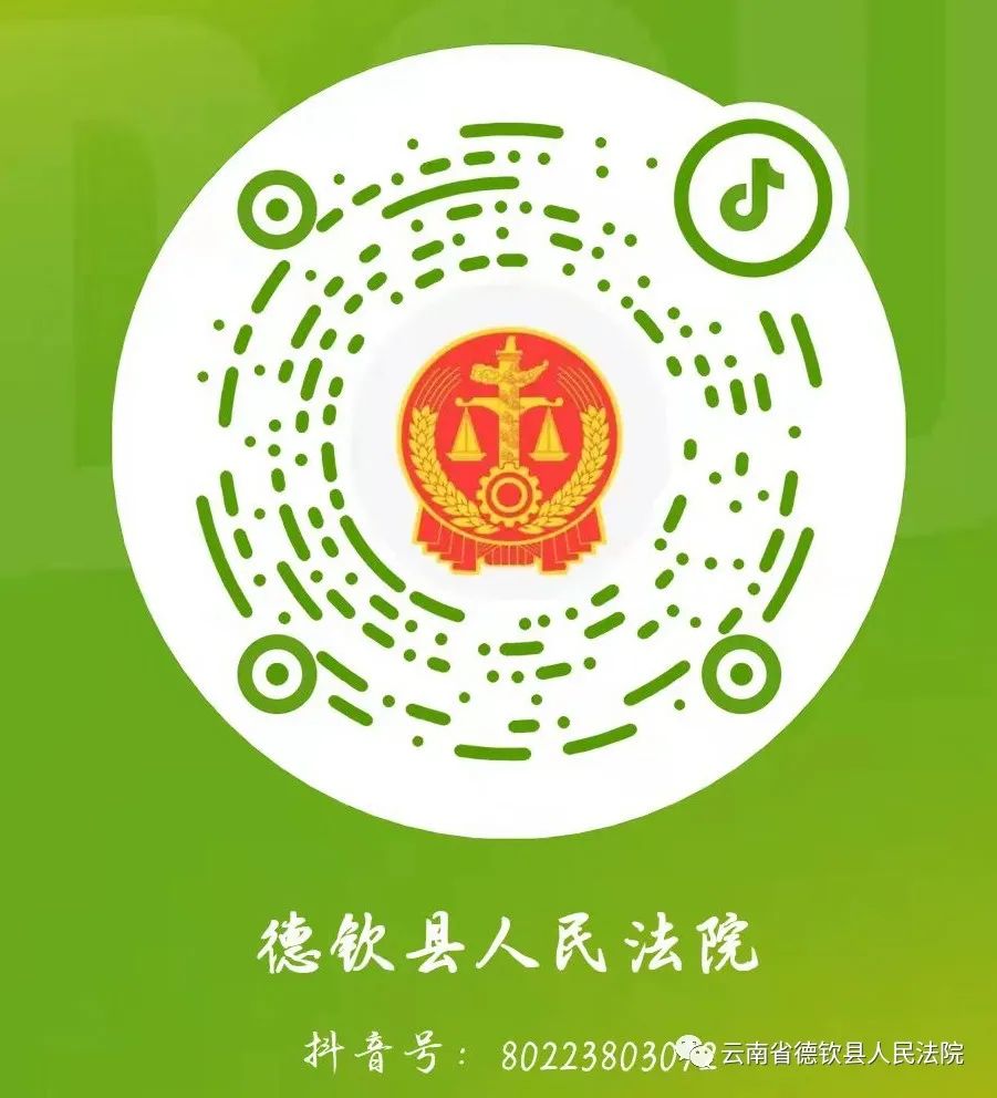公众号、抖音号、视频号长按扫码关注,了解更多关于德钦县人民法院哦!