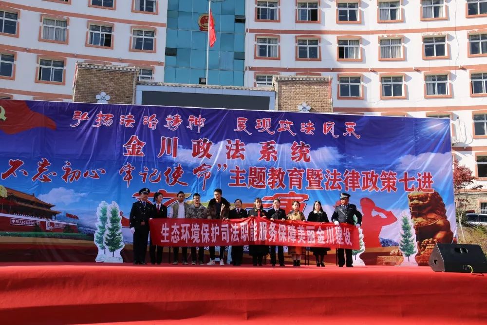 全体演员拉着“生态环境保护司法职能服务 保障美丽金川建设”横幅。
