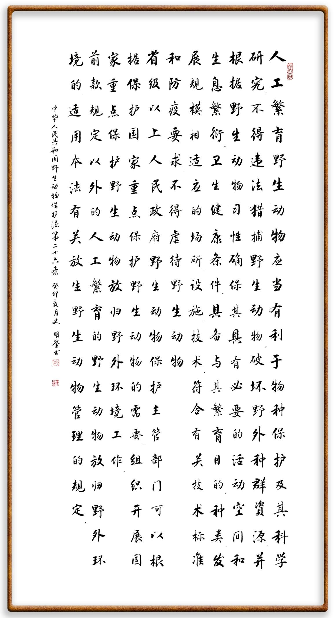 野生动物保护法第二十六条 人工繁育野生动物应当有利于物种保护及其科学研究,不得违法猎捕野生动物,破坏野外种群资源,并根据野生动物习性确保其具有必要的活动空间和生息繁衍、卫生健康条件,具备与其繁育目的、种类、发展规模相适应的场所、设施、技术,符合有关技术标准和防疫要求,不得虐待野生动物。
