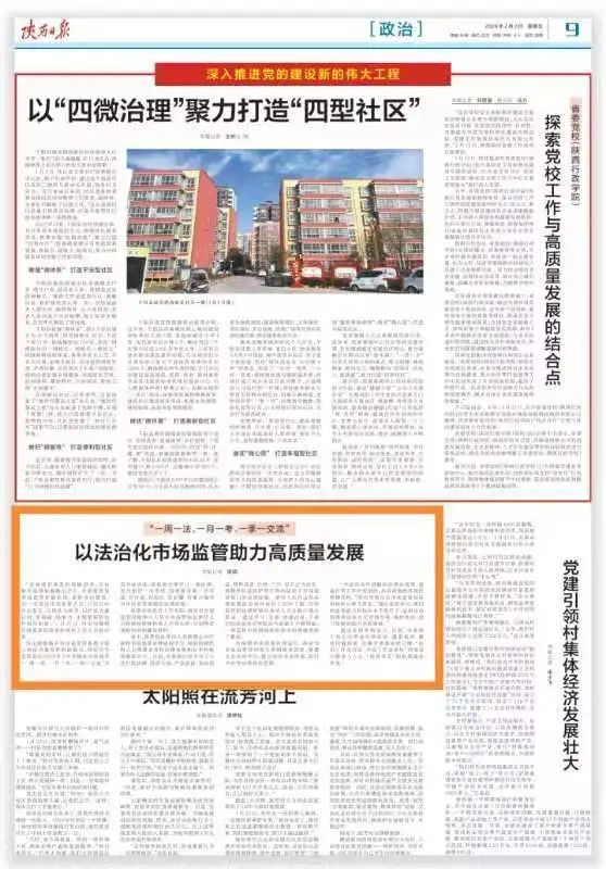 《陕西日报》专题报道全市市场监管系统“一周一法、一月一考、一季一交流”全员学法活动成果