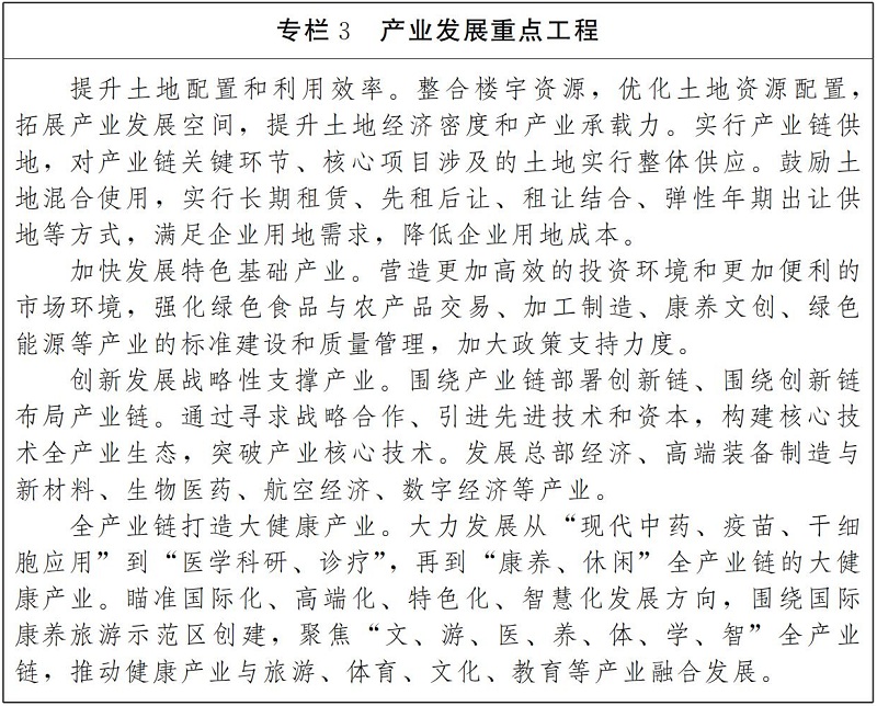 加快传统产业改造提升,着力培育壮大战略性新兴产业,推动产业数字化和数字产业化发展,建立特色鲜明、支撑有力、具有较强竞争力和辐射带动力的现代产业新体系。加快培育和聚集先行先试的企业载体,营造复制推广的应用场景,不断壮大产业规模,提升产业发展水平。加快构建5G产业体系,进一步推动互联网、大数据、人工智能与实体经济的深度融合,推动农业、工业和服务业融合发展,形成新业态,延长产业链,增加附加值,提升产业综合效益和竞争力。积极推动国际产能合作和跨境产业园区建设,提高产业链供应链稳定性和竞争力,增强产业链供应链自主可控能力。