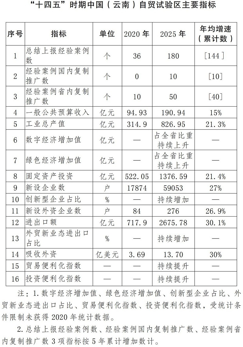 云南省人民政府办公厅关于印发“十四五”中国(云南)自由贸易试验区建设规划的通知