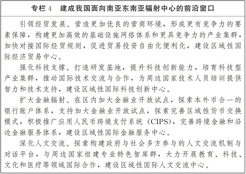 四、建成我国面向南亚东南亚辐射中心的前沿窗口