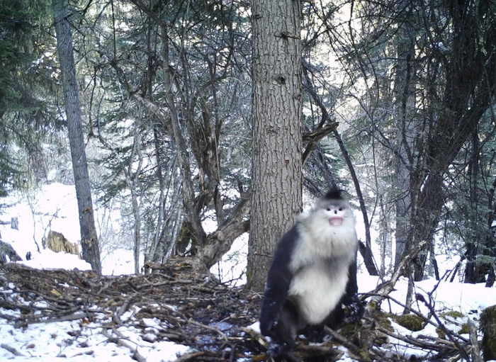 ▲山水自然保护中心团队用红外相机拍摄到的野生滇丝金猴。 山水自然保护中心