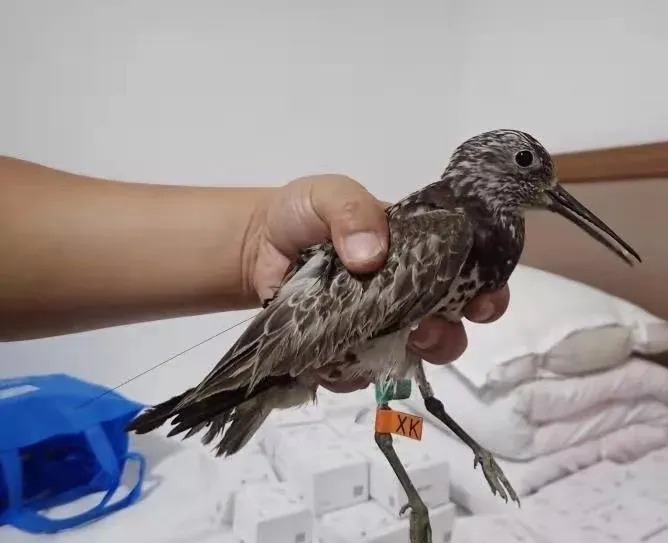 ▲ 工作人员给一只大滨鹬安装了卫星跟踪器用于鸟类环志研究。 阿拉善SEE公益机构