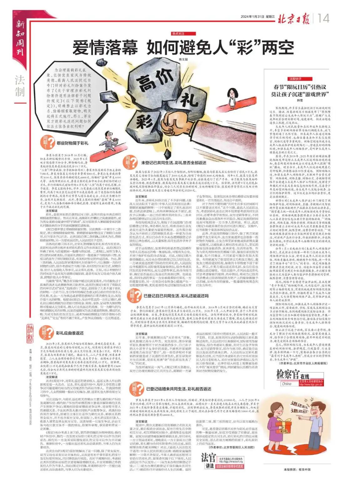 近年来,涉彩礼纠纷出现了不少新问题。《最高人民法院关于适用〈中华人民共和国民法典〉婚姻家庭编的解释(一)》中虽规定了彩礼返还问题,但在法律逻辑上,尚有两种情况未予规定,此次予以明确:一是已经结婚并共同生活;二是未办理结婚登记但已经共同生活的。