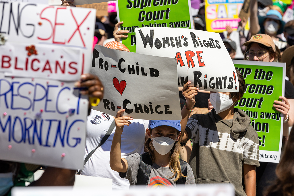 美国女权组织等社会运动团体5月14日在全国各地组织示威游行活动,数万人参与活动,希望阻止最高法院取消半个世纪前通过的一项保护女性堕胎权利的法案。