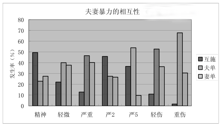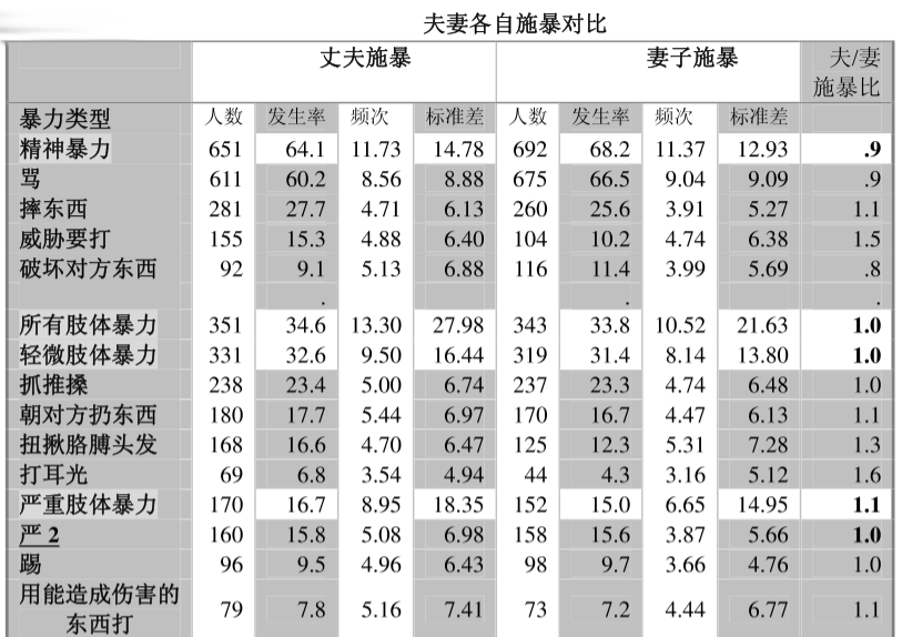 中国社会科学院在论文《亲密关系中的暴力》中明确提出,暴力在亲密关系中相当普遍,男性由于身体条件优势更容易对女性实施家暴,但部分男性也正沦为婚姻中的受害者。根据其统计数据显示,男性倾向于实施肢体暴力,而妻子更倾向于对丈夫施加精神暴力。