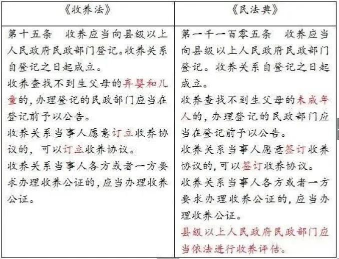 《民法典》第一千一百零五条增加了“县级以上人民政府民政部门应当依法进行收养评估”,有助于符合收养条件的被收养人和收养人建立合法的收养关系。