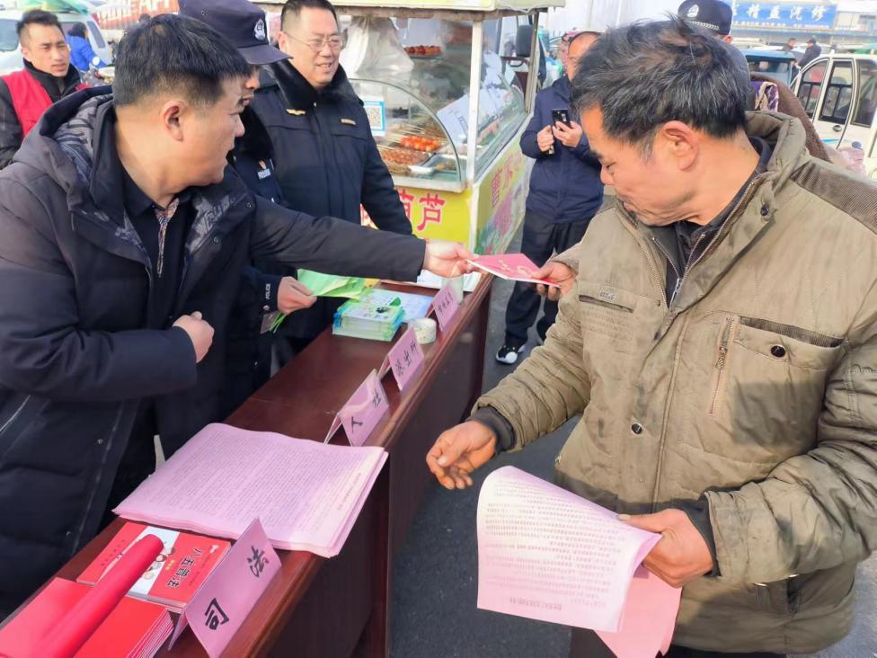 春节将至,为了让法治宣传更接地气、更聚人气、更有烟火气,进一步增强群众办事依法、遇事找法、解决问题用法的法治意识,2月6日,都司司法所联合派出所、市场监管、人社、信访等部门在都司大集开展“法律赶年集 乡村普法行”宣传活动,为赶集的群众送上“法治年货”。