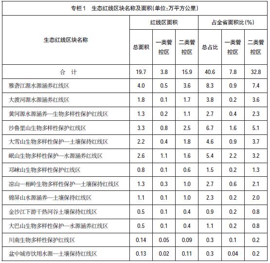 附件:1.四川省生态保护红线涉及的省级以上保护地汇总表