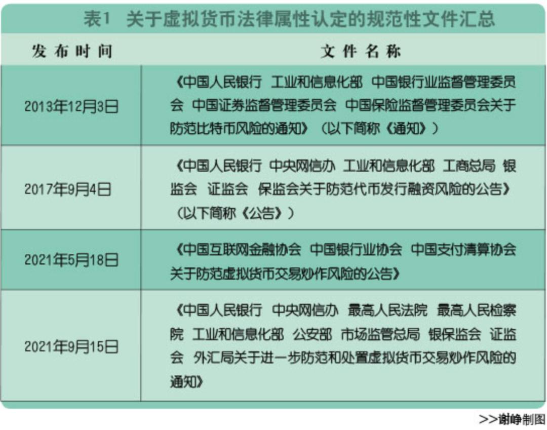 截至目前,我国尚未出台有关虚拟货币的法律或行政法规,由相关主管部门颁布的涉及虚拟货币监管的规范性文件汇总(见表1):
