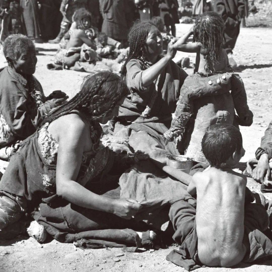 旧西藏农奴制度下流落街头、乞讨求生的妇女儿童(资料照片)