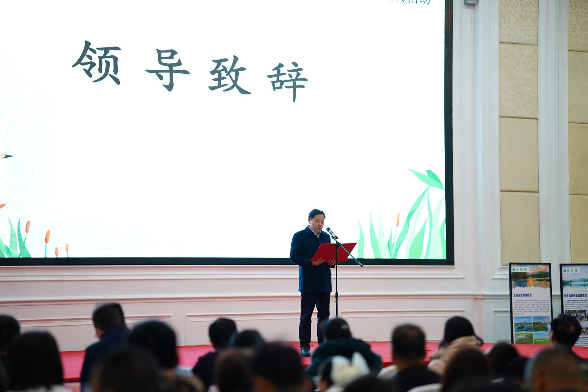 李林山在致辞中指出,近年来,湖南省林业局大力推进湿地保护修复工作,取得了巨大成绩。目前全省已建立国际重要湿地5处、国家重要湿地2处、省级重要湿地50处、湿地类型自然保护区45处、省级以上湿地公园78处,构建了较为完善的湿地保护体系。他强调,湿地保护是人民群众共同参与、共同建设、共同享有的事业。要坚持筑牢生态安全防线,持续提升湿地治理能力,不断促进人与自然和谐发展,为发展现代林业、建设美丽湖南作出新的更大贡献。