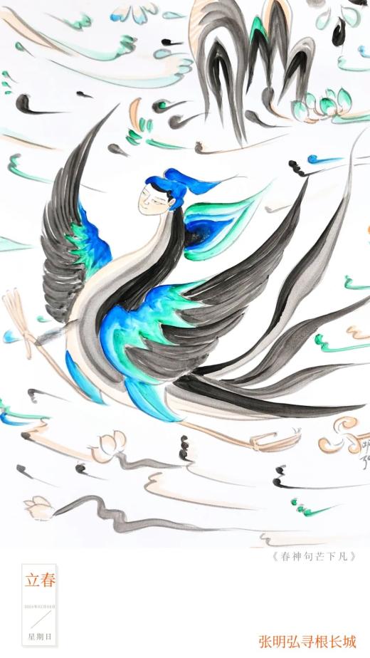 《春神句芒下凡》张明弘绘于定慧精舍 · 壁纸款