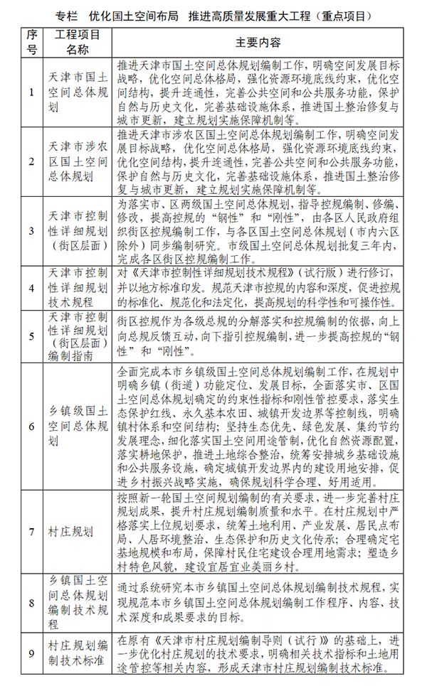国土空间规划的引领和管控作用更加有效。深入推进京津冀协同发展,全力做好各级各类国土空间规划编制工作,优化国土空间开发保护格局,统筹布局生态、农业、城镇等功能空间,强化底线约束,提升国土空间开发保护质量与效率,“津城”、“滨城”双城发展格局初步形成,支撑经济高质量发展的空间格局基本形成。