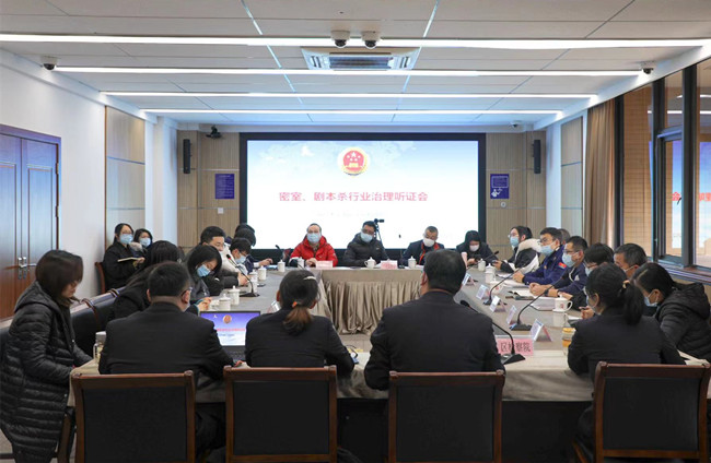 浙江省舟山市定海区检察院邀请各行政机关、人民监督员等召开密室、剧本杀行业治理公开听证会,听取各方意见。