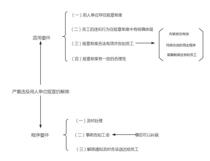 这个是适用这一条首先必须明确的。企业的规章制度就如同企业的“准法律”,是可以成为劳动争议裁判的依据的。所以首先你必须得有这样一个依据。虽然现在实践中发生这种情况的情形比较少,但也有少部分企业甚至在没有规章制度的情况下就适用这条,说我们企业都一直是这样的。如果企业采取这种方式,发生争议时仲裁或者法院是不会以一个不存在的规章制度来作为争议裁判准则的。