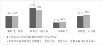 根据上文数据,泰国、菲律宾、马来西亚、印度尼西亚、越南5个国家发生的中国公民涉水安全事件,是中国公民在东盟国家面临的第一大安全风险。其他东盟国家没有报道该类中国公民安全事件,但不排除未曾发生的可能性。涉水安全事件的原因包括主客观因素,其中主观原因影响较大。报道中明确指出当事人由于无视红旗警示和预警等自身原因造成的安全事件占该类安全事件的55%。客观原因包括遭遇风浪天气,水上游乐项目安全设施建设和救护设施不足,乘坐游船、快艇等海上交通工具时遭遇意外等。具体来看,一方面,一些中国公民自身安全防范意识不足,缺乏自我保护能力。另一方面,在相关海域红旗警示和中文安全提醒标识较少。笔者对赴泰中国公民安全风险所做的300份调查问卷显示,对于红旗警示和中文安全标识,“看到过,不太多”的比重最大(见图2)。