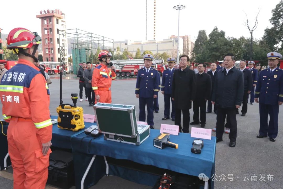 王宁、王予波一行来到五华区消防救援大队,检查消防应急战备工作,参观实战演练,看望备勤人员,向全省消防救援官兵表示慰问。