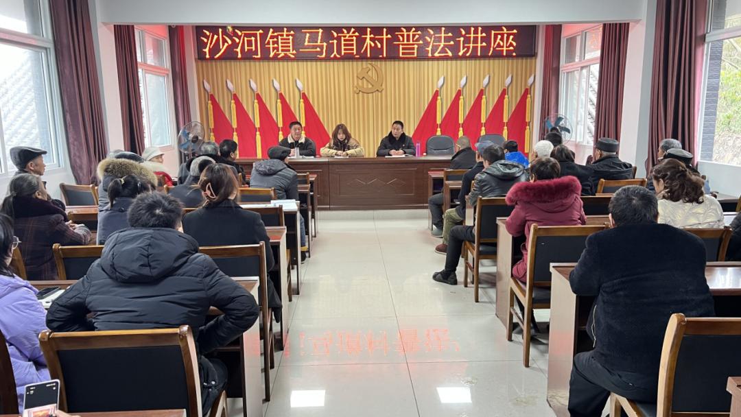 近日,高县人民法院沙河法庭干警彭德中到沙河镇马道村开展了今年第一期普法宣传讲座,村两委成员、村民代表及人民调解员四十余人认真听取了讲座。彭德中以农村生活中经常接触的婚姻家庭、继承类纠纷为切入点,围绕夫妻共有财产范围、父母子女权利义务、夫妻感情破裂标准、夫妻共同债务的认定、诉讼时效等相关问题,用以案说法的方式进行了详细讲解和比较分析,从专业的角度分析防范纠纷的注意事项和正确的维权方式,现场解决群众提出的问题,与群众互动交流。同时还就各种常见纠纷案件的调解方式方法进行了分享,引导人民调解员提升理论知识转化为解决实际问题的能力,优质高效做好调解工作。