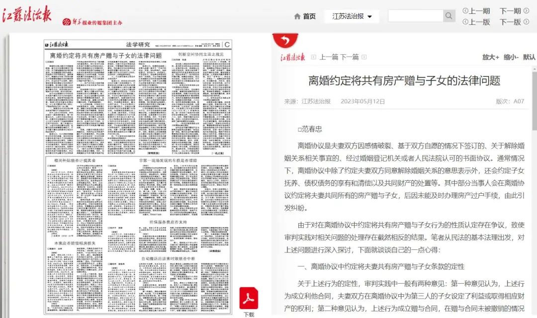 原标题:《【法学研究】离婚约定将共有房产赠与子女的法律问题》