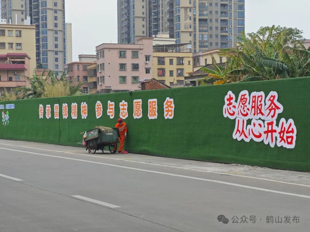 这里之前是个工地,加了围挡后,变得好看又整洁。而且我在鹤山很多地方都看到过这个围挡,整座城市都增添了绿色,变得非常美观。