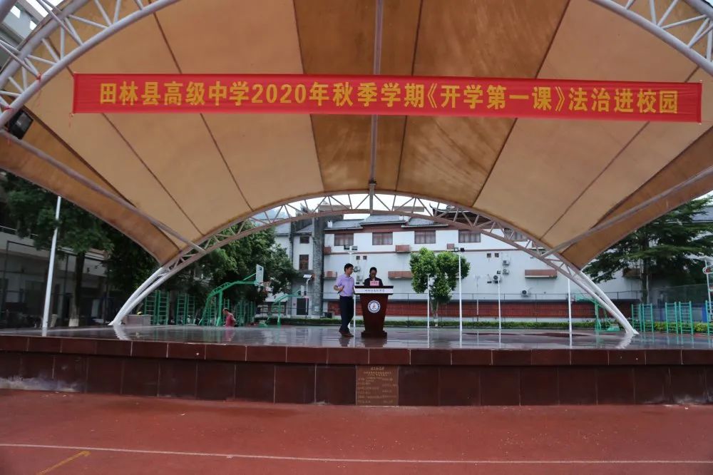 增强法制意识 筑牢青春防线。为进一步确保校园安全稳定,有效提高开学季在校学生的安全意识和法制意识,预防和遏制青少年违法犯罪。2020年9月7日上午,田林县人民法院刑庭赵国秀法官带队来到田林县高级中学开展2020年秋季学期“开学第一课”法治进校园活动。