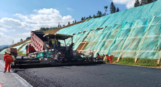2023年11月21日,龙寻高速顺利完成沥青路面下面层试验段摊铺