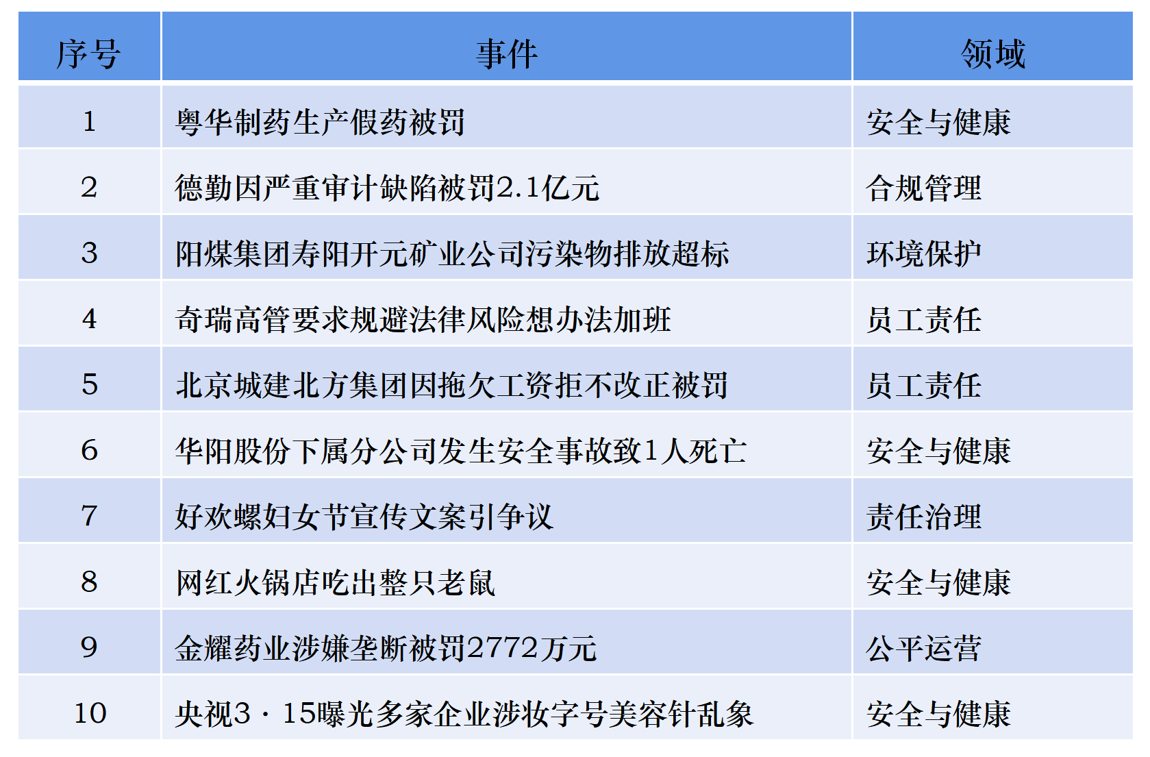 与2月相比,警示事件总数下降,其中合规管理类的事件占比下降,消费者权益和责任治理议题的事件占比上升。从一季度整体来看,涉及消费者权益的事件占比呈现明显上升态势。