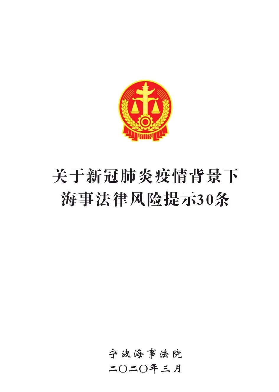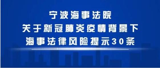 原标题:《宁波海事法院发布《关于新冠肺炎疫情背景下海事法律风险提示30条》》