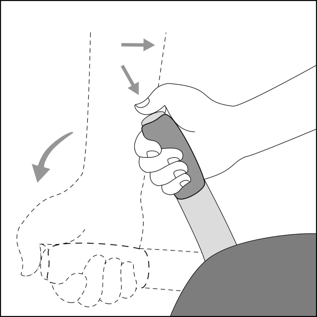 5.4.1 平视前方,双手握住车把,拇指在车把下方,其余四指在车把上方,手背和前臂基本处于同一平面,肘臂轻微弯曲,肩部、背部自然放松。