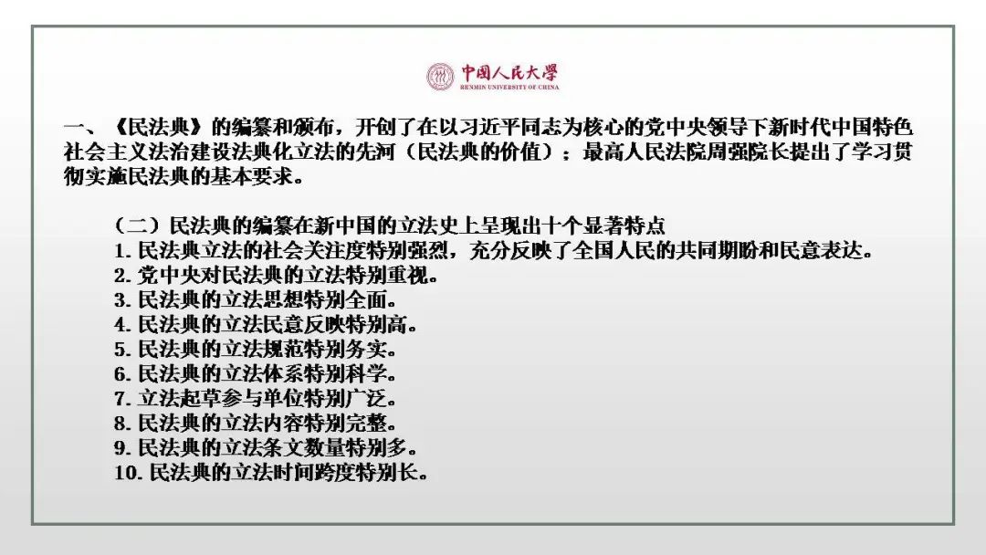 (二)民法典的编纂在新中国的立法史上呈现出十个显著特点