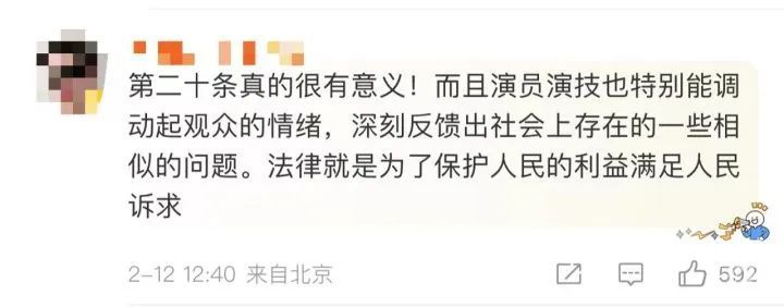 最高检称,《第二十条》之所以关注,就因为这是真真切切发生我们百姓身边的事情,看似遥远,却时时可能发生在自己身上,所以很容易产生共鸣。