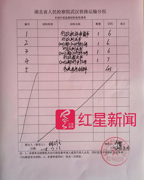 目前,胡剑兵已向湖北省人民检察院武汉铁路运输分院申请抗诉。该检察院工作人员告诉红星新闻,这个案子刚刚收到,目前还在调卷中。审查期限是3个月,阅卷期不计入审查期限。