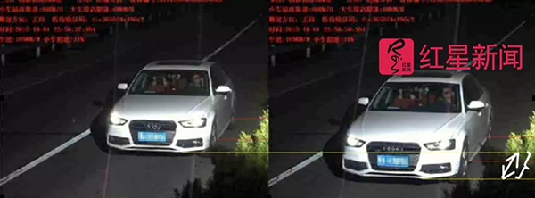 对此,胡剑兵提出了质疑,认为判定超速有问题。他称,比对2张照片中路面的横向接缝、车辆车身等固定参照物后发现,车辆位移不到半个车身(他所驾驶的2015款奥迪A4L的车身长度为4.761米),若按0.4秒位移3米计算,车辆当时的时速为25.2m/h。
