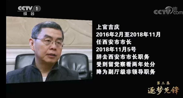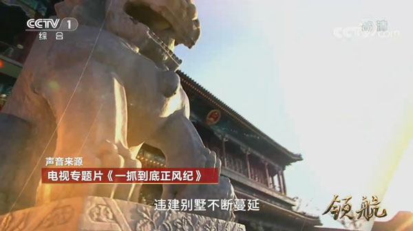 16集大型电视专题片《领航》自10月8日起在CCTV-1播出。在9日播出的《领航》第三集中,该片揭露了秦岭北麓西安境内违建别墅专项整治行动的惊人内情,并再度点名已被降为副厅的西安市原市长上官吉庆,和时任陕西省委常委、西安市委书记的“亿元贪官”魏民洲。