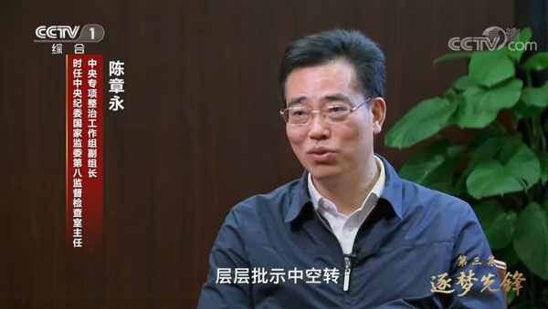中央专项整治工作组副组长、时任中央纪委国家监委第八监督检查室主任陈章永在剧中出镜,表示“总书记的重要批示,在省市区三级主要领导的层层批示中空转。”