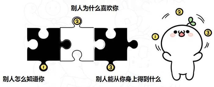 别人怎么知道你:涉及2个重要的点,你通过什么渠道宣传、别人通过什么样的方式去了解你;别人为什么喜欢你:到底是内容还是渠道亦或其他方面做得好;别人能从你身上学到什么?做商业就像一个小丑掂量三个球,当三个球抛掷幅度相同时,这个商业模式就是成型的,当某一个球动力不足时,得在这一方面发力。若第三个球有问题,那就是体验问题。