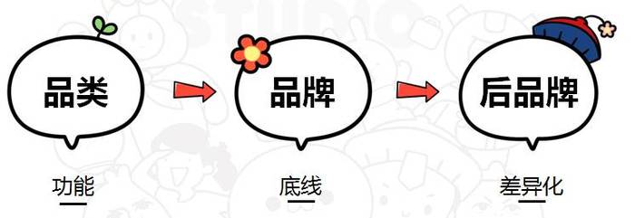 产品划分认知三阶段:最先开始产品这块是品类来做划分,最重要的是功能;后来有品牌概念,这是认知的一个底线,认为其质量在一定标准之上;现在进入后品牌时代,品牌众多,在品牌层面分辨不大,所以在现有的基础上找出差异是很重要的。