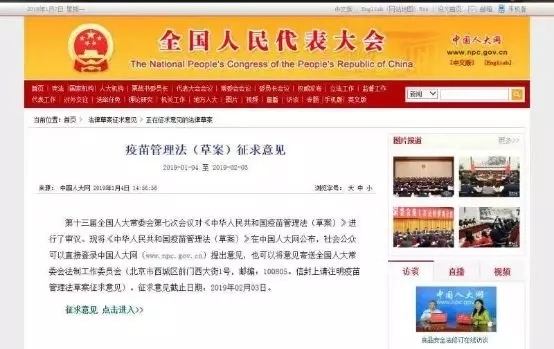 全国人大就疫苗法征求意见,有望上半年实施,意见征求关注这五点